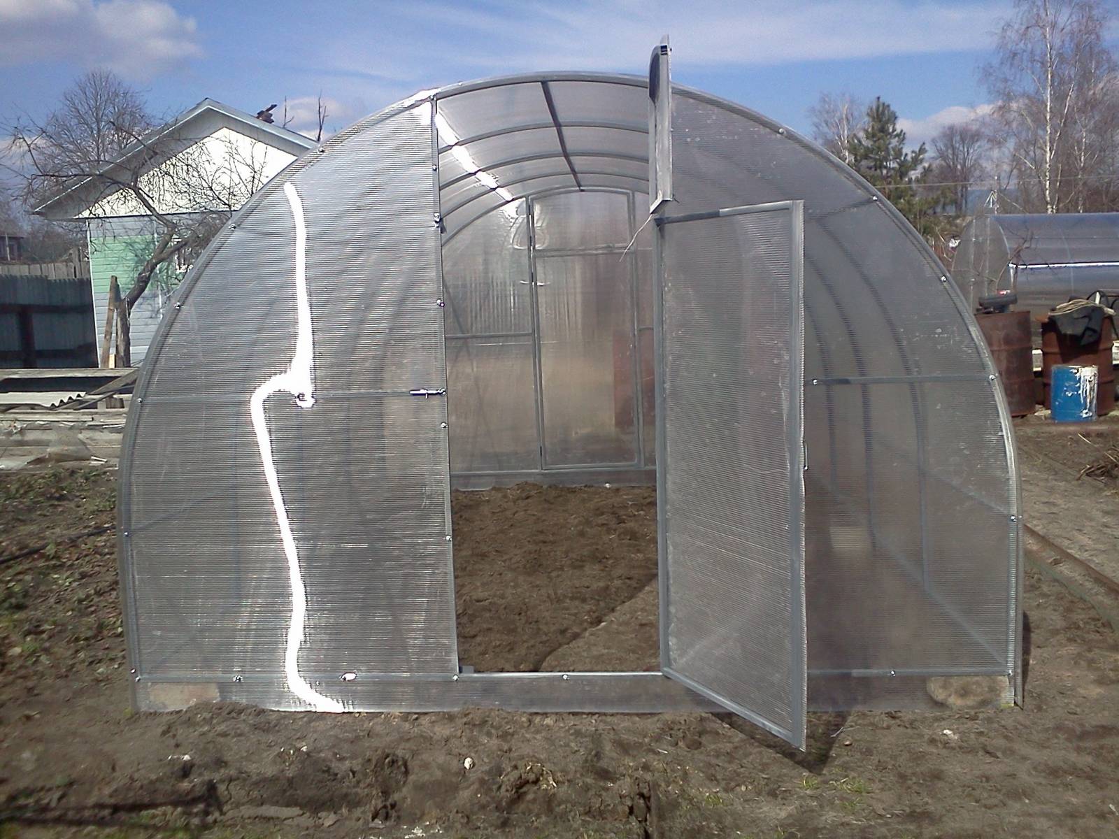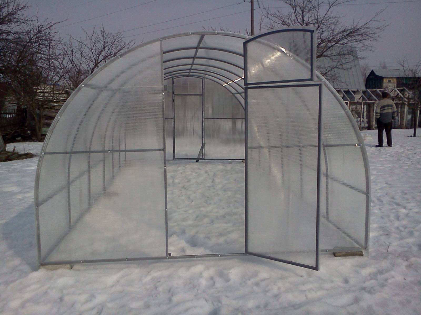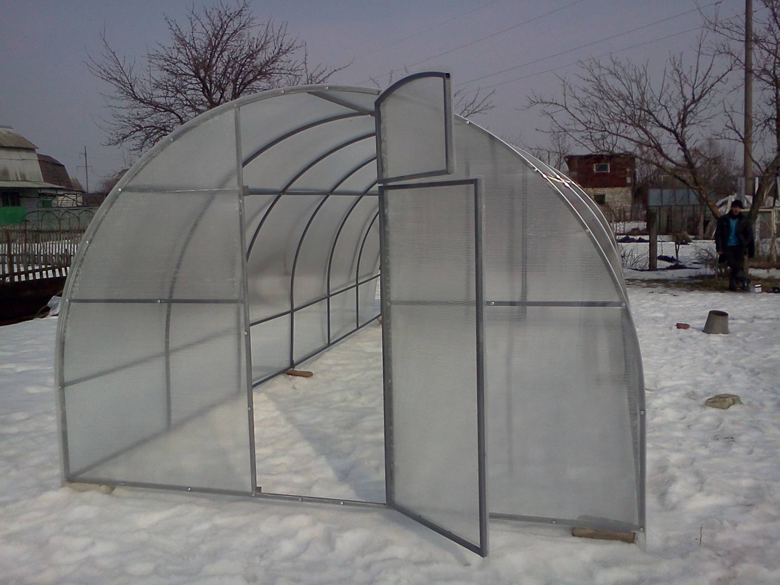 теплица из проф трубы 20/20/1.5 и полекорбоната 4мм. Размеры В-2м;Ш-3м;Д-6м.